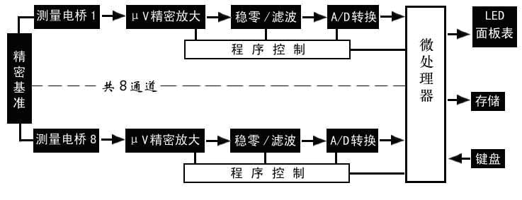 智能應變測量儀由應變電橋、放大器、信號調理電路、微處理器、顯示記錄器等基本部分組成。